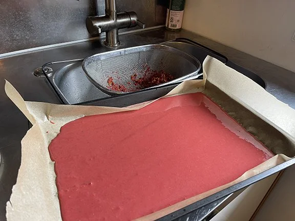 Pour the puree on parchment paper on a baking sheet and place it in the oven at the lowest temperature with the door cracked until you can peel the puree from the parchment paper like a sheet.