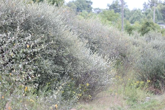 A stand of Autumn Olive bushes growing along the roadway in Central Indiana.