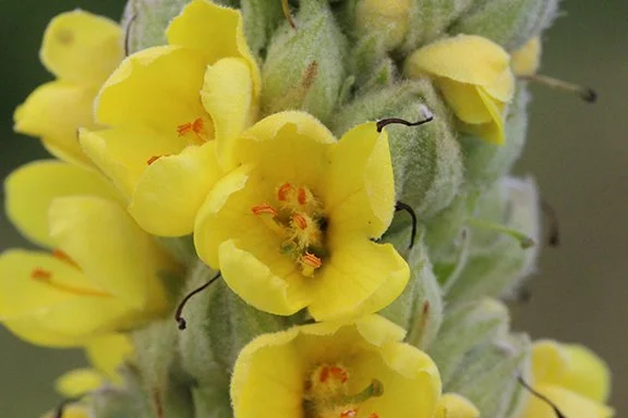 Appearance: Mullein is adorned with tiny white hairs, giving it a soft, silvery, gray-green appearance. This characteristic is not just for aesthetics; the softness of the leaves has been utilized in practical ways, such as makeshift toilet paper and shoe insoles in the past.