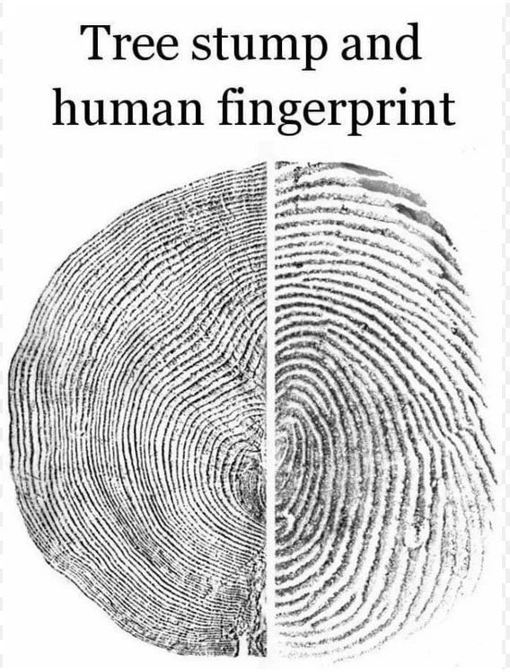Seeking time and solitude in the outdoors has saved my life. It has helped me be a better father and husband. It has helped me manage my stress and understand myself on a deeper level. And, it has strengthened my relationship with God. It has done the same for millions of others. I can’t go into the wilderness and not see God’s hand in every part of it, big and small. Nature is amazing. I’ve posted an image below of the rings of a tree side by side with a human fingerprint that I saw online the other day and it was yet another reminder to me that nothing happens by coincidence.